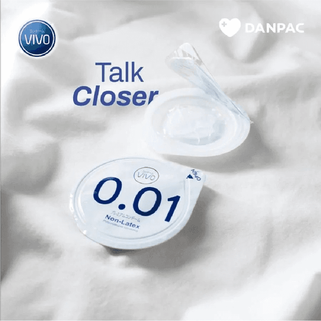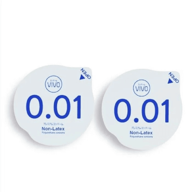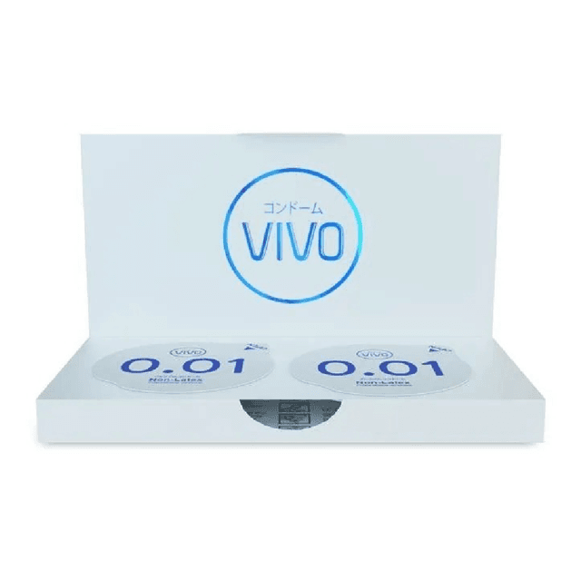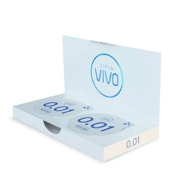 VIVO Kondom 0,01 terbuat dari Polyurethane ekstra tipis dan ekstra sensitif serta tidak mudah sobek ataupun bocor seakan tidak menggunakan pelindungan. Dengan ditambahkan pelumas yang beraroma jasmine yang dapat membantu menambah kepuasan dan tingkat sensitivitas selama berhubungan. Mencegah kehamilan dan penularan penyakit menular seksual Komposisi bahan: Polyurethane. Aturan Pemakaian: Pasang sebelum melakukan hubungan intim