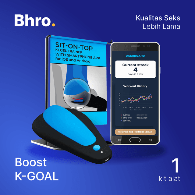 Kegel Pad Boost KGOAL merupakan perangkat latihan otot dasar panggul (Kegel trainer) yang dirancang untuk membantu pengguna melakukan latihan Kegel dengan lebih efektif melalui panduan tekanan dan umpan balik (biofeedback). Latihan otot dasar panggul bermanfaat untuk membantu meningkatkan kontrol otot panggul, mendukung kesehatan seksual, membantu kontrol ejakulasi pada pria, serta membantu kontrol kandung kemih pada pria maupun wanita. Perangkat ini dapat digunakan secara mandiri di rumah dengan panduan aplikasi pendamping untuk memantau progres latihan. Boost memiliki banyak pilihan permainan interaksi yang membuat latihan jadi fun dan gak bosan Penggunaan rutin sesuai panduan latihan dapat membantu meningkatkan kekuatan dan kontrol otot panggul secara bertahap.