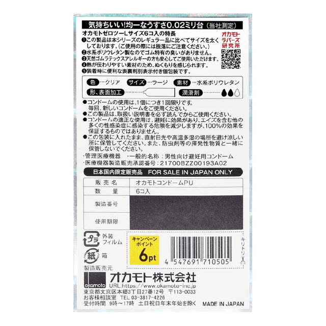 Large Non-Latex Condom - 002 - Okamoto - 6pcs