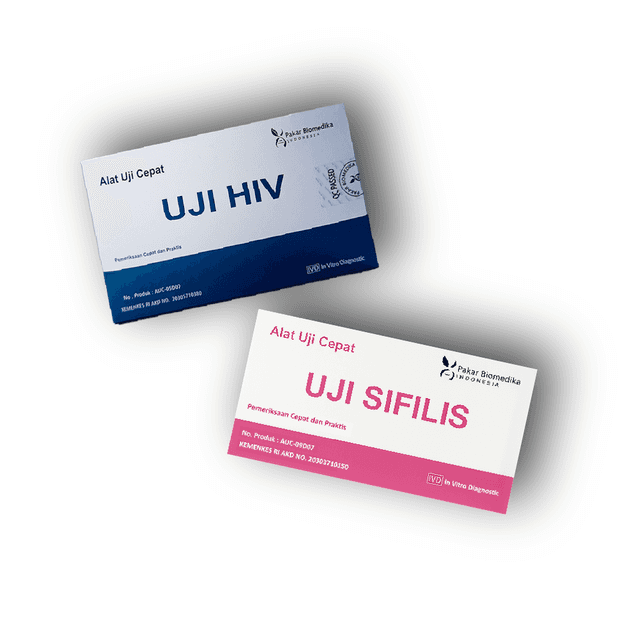 Skrining HIV dianjurkan setiap 3-6 bulan sekali bagi mereka yang aktif secara seksual dengan setidaknya dua pasangan seksual, atau dengan satu pasangan yang aktif secara seksual dengan pasangan lain dalam jangka waktu tersebut, dan tidak tertular HIV. Alat skrining Uji Sifilis dapat digunakan untuk mendeteksi keberadaan antibodi sifilis dalam darah, serum, atau plasma. Alat skrining HIV dianjurkan setiap 3-6 bulan sekali bagi mereka yang aktif secara seksual dengan setidaknya dua pasangan seksual, atau dengan satu pasangan yang aktif secara seksual dengan pasangan lain dalam jangka waktu tersebut, dan tidak tertular HIV. Aturan Pemakaian: 1. Buka kemasan foil yang terdiri atas Cassete berbentuk persegi dan Pipette Plastik untuk mengambil darah 2. Buka kemasan alcohol pad 3. Usapkan alcohol pad di bagian jari yang hendak diambil sampel darah 4. Gunakan jari telunjuk / jari tengah / jari manis untuk hasil maksimal 5. Buka tutup lancet dan arahkan pada jari yang telah diberikan alkohol 6. Tekan lancet hingga jari mengeluarkan titik darah 7. Ambil sampel darah dengan pipette plastik 8. Pencet pipet agar darah terambil sempurna 9. Gunakan bekas alkohol untuk membersihkan jarinya 10. Teteskan darah dari pipette ke cassette di area cawan yang berbentuk huruf S 11. Siapkan cairan buffer dan teteskan 1-2 tetes ke cawan cassette yang telah diberi darah 12. Tunggu hasil dalam 10-15 menit Tes Uji Sifilis Alat Skrining Uji Sifilis dapat digunakan untuk mendeteksi keberadaan antibodi sifilis dalam darah, serum, atau plasma. Aturan Pemakaian: 1. Usapkan alkohol pada jari yang hendak di ambil darahnya 2. Tekan lancet sampai jari mengeluarkan titik darah 3. Sedot darah yang keluar menggunakan pipet plastik 4. Teteskan 1-2 tetes darah ke dalam lubang sample (S) 5. Teteskan 1-2 tetes cairan Buffer ke dalam lubang sample (S) 6. Tunggu hasil dalam 15 Menit (jangan membaca hasil setelah 20 menit) Kuantitas: Masing-masing 1 tes kit lengkap