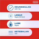 Kenyamanan maksimal dengan ketebalan minimal pada saat berhubungan dan perlindungan dalam mencegah penularan penyakit menular seksual Komposisi bahan: Polyurethane Tipis. Aturan Pemakaian: Pasang sebelum melakukan hubungan intim